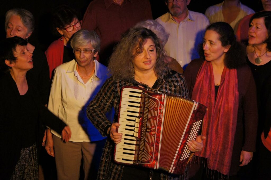 Il s’est formé autour d’une envie forte de retrouver des sons oubliés, des gestes, des mémoires disparues. Parmi les chanteurs beaucoup sont d’origine italienne, de première, deuxième, troisième, quatrième génération mais aussi beaucoup sont en recherche d’un passé pas forcement italien, une puissance du geste vocal qui ramène à la terre, aux origines, au sens large du terme. Ils sont professeurs, chômeurs (?!), musiciens, comédiens, éducateurs, médecins, secrétaires, stewards, correcteurs, journalistes, ouvriers, maquettistes, étudiants, retraités, mais surtout femmes et hommes passionnés de la musique traditionnelle italienne !